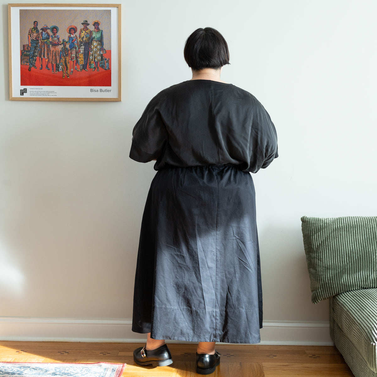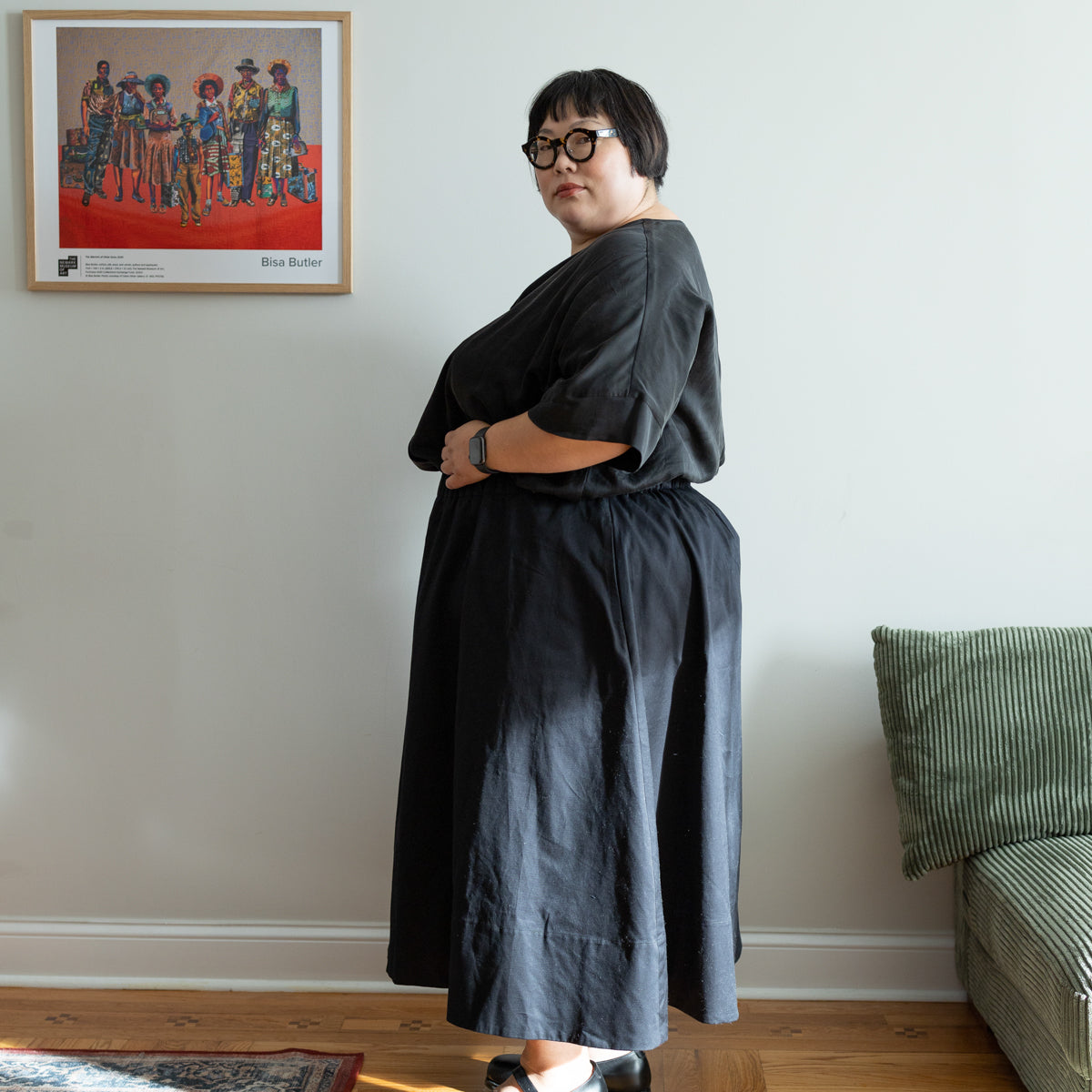 The Droma Skirt is a midi length skirt with an A-line shape which features a deep hem facing, elastic waist, inseam pockets, and back darts. The pattern is specifically designed for larger bodies and is a versatile addition to your pattern (and actual!) wardrobe. It’s a perfect skill builder project as well as being the skirt you’ll want to wear again and again. Learn a neat method for sewing inseam pockets that won’t flap around as well as lowstakes versions of darts and hem facings. The skirt can be sewn in a variety of fabrics from a cozy wool suiting to a flowy tencel so you can wear it all year round.
